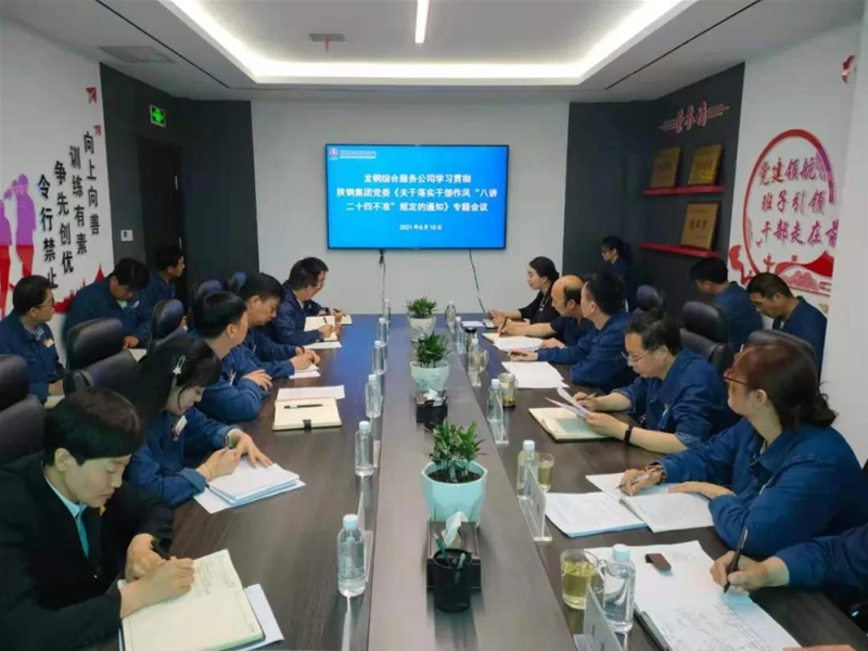近日,陕钢集团党委下发了《关于落实干部作风“八讲二十四不准”规定的通知》,龙钢公司迅速行动,各单位纷纷于5月10日组织召开专题会议,学习规定内容,大力践行“感恩,知责,律己,有为”要求 太阳集团下载,扎实开展以案促改和巡视巡察系列问题整改工作,深入落实“学党史,悟思想,办实事,开新局”教育要求,以优良的干部作风,助力公司早日实现“双过半”。