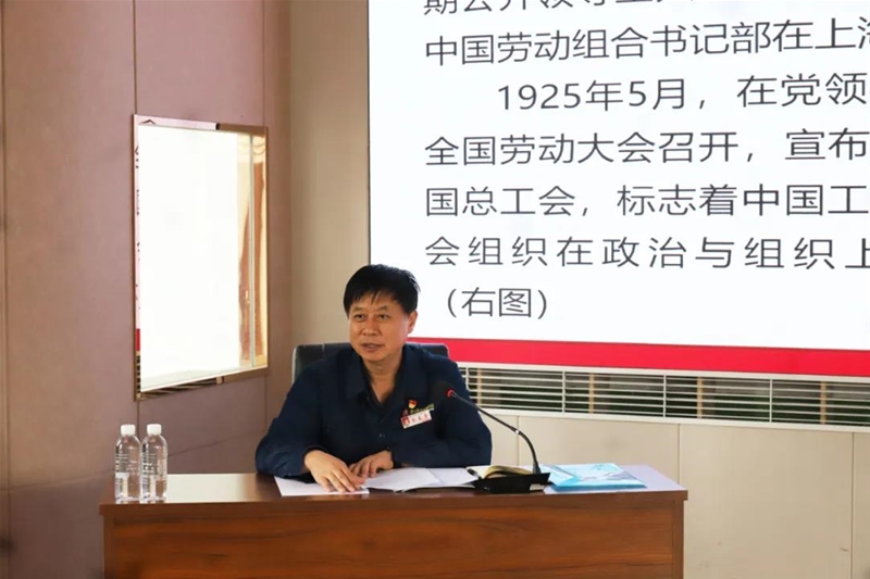 宣讲中 太阳成集团官方版,赵春棠以《从党领导中国工人运动的百年历史中汲取奋进力量》为题,从中国共产党领导工人运动的百年历程,中国共产党领导工人运动的理论探索,百年中国工人运动的启示体会三方面进行了一场生动的宣讲,并与参会人员进行了党史知识互动问答,进一步引导广大党员干部传承红色基因,厚植为民情怀,切实为职工办好事,办实事,解难题。