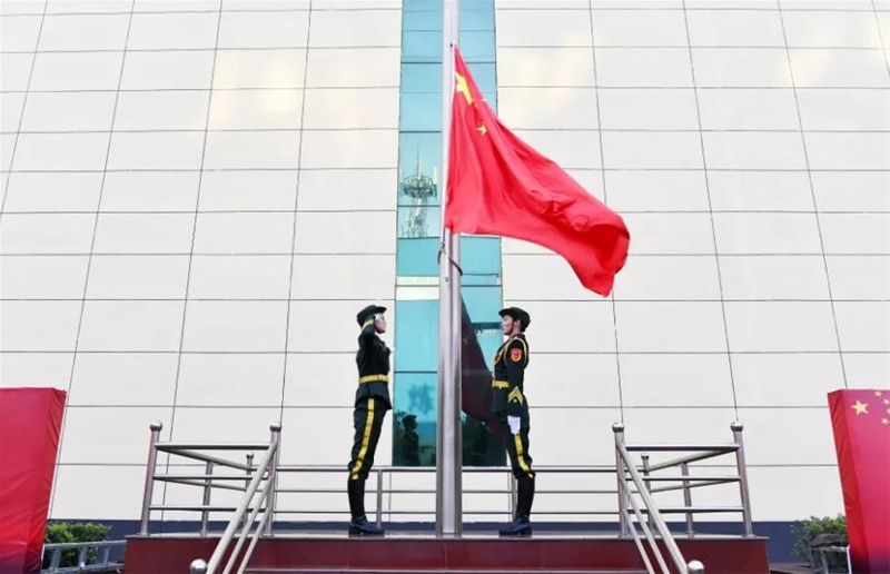 上午7:20分,升旗仪式正式开始 太阳集团官方网站,全场肃立,合唱《歌唱祖国》,全体人员挥舞五星红旗,汇聚成一片红色的海洋,热烈的场面令人心潮澎湃。