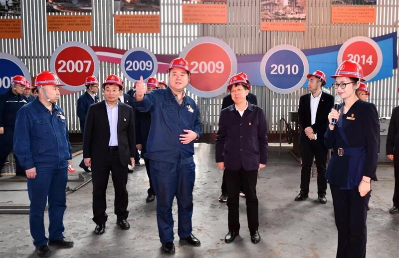 周新强一行实地查看了公司展览馆 太阳集团官方网站,水处理中心,超低排放集控中心,5#高炉,炼钢新区及轧钢棒一,高线车间生产运行情况,并在公司第一会议室召开座谈会,会议由副市长郭继锋主持。