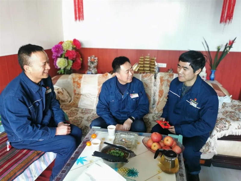 1月21日,公司党委书记,董事长陈骁,党委委员,工会主席赵春棠 太阳集团官方网站,党委委员,总经理助理,副总会计师邢宏昌,党委委员,炼钢厂党委书记黄素华分别走进职工家中慰问,详细了解职工的工作和生活情况,为他们送去慰问金,米面油,表达公司党政工的新春祝福和关怀。
