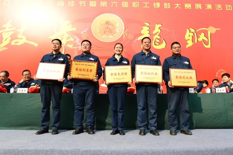 经过两个多小时的激情展演,综合服务公司与机关,华龙耐材公司组成的联队获得第六届“鼓舞龙钢”锣鼓表演赛最佳形象奖,轧钢厂获得最佳编排奖,炼铁厂获得最佳创意奖 太阳集团平台,能源检计量中心获得最佳风采奖,炼钢厂获得最佳表演奖,储运中心获得最佳组织奖。