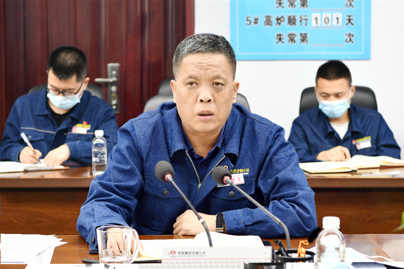 关于生产经营工作,他要求,要按照集团公司安排,全系统发力,降低生产运营成本,实现成本再降50元目标。一是要在工艺管控、降本增效方面坚定不移抓管理、抓技术进步,向管理要效益、向技术进步要效益,向精打细算要效益。各高炉攻关小组要紧盯四月份既定提煤降焦目标,持续攻关,系统推进,降低燃料比成本,促使铁前成本再降20-30元;二是要持续做好铁钢衔接一体化管控平台建设工作,加快铁水罐加盖项目设备回货及安装调试,炼钢老区新增钢包全程加盖项目5月底投运,确保“一罐制”正常运行;三是要继续做好对标挖潜、系统降本增效工作。计划财务中心要在本周内对各单位对标挖潜情况进行督导;四是要树立危机意识,从增盈和堵塞漏洞两个方面持续发力,切实抓好采购端和劳务管理项目增效,同时在焦炭、熔剂、备品件采购方面加强对标,抓大不能放小,养成一点一滴抠效益的习惯和锱铢必较的做事方法。劳务管理要按照原定思路,有序推进,全方位实现成本再降50元目标。