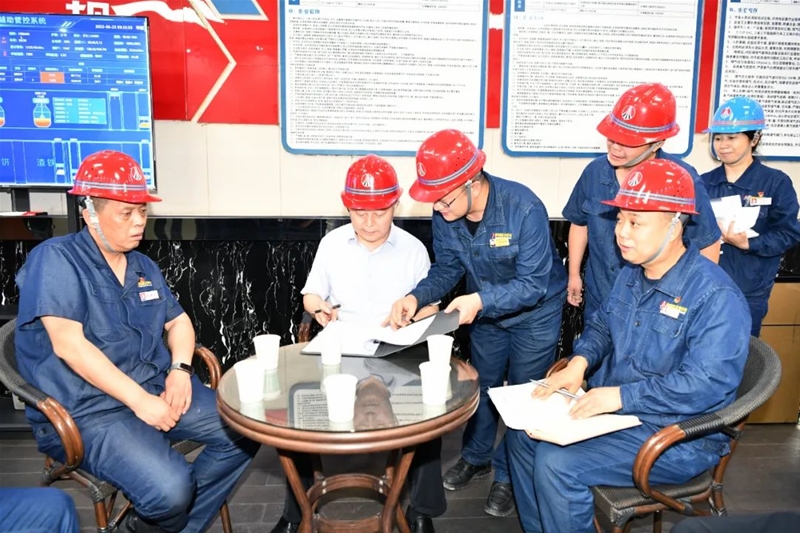 杨海峰一行先后到龙钢公司2#综合料棚 太阳集团官方网站,5#高炉,炼钢新区进行安全检查,详细了解了高温天气下的安全生产工作措施,查看了熔融金属及煤气作业管控情况,并现场协调指导了龙钢公司转炉升级改造项目推进工作。