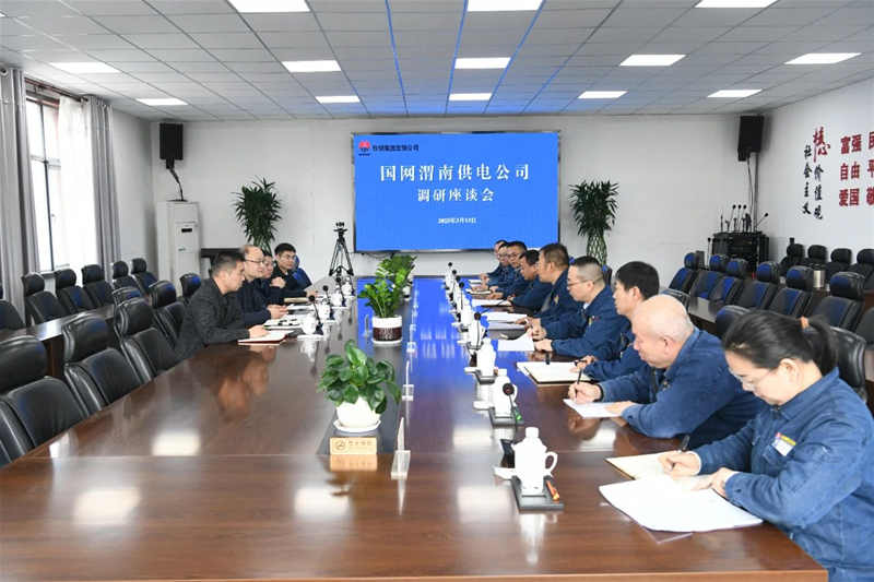 3月13日,国网渭南供电公司党委书记,副总经理迟方德一行来公司调研座谈 太阳集团下载,公司党委副书记,董事,总经理冯伟,副总经理王建军,习晓峰及相关部门负责同志参加座谈。