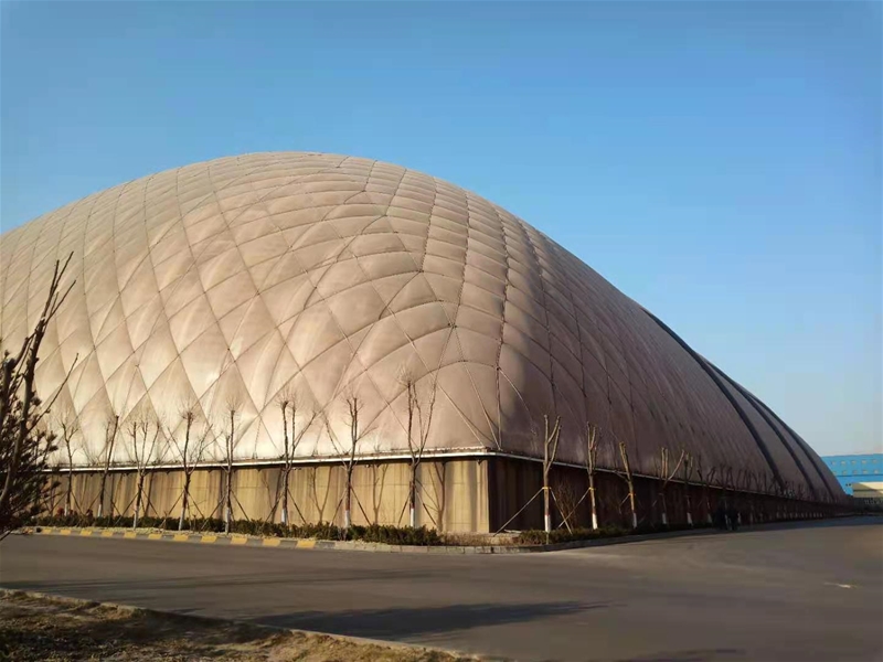 因气膜大棚室内外温差较大,棚内所堆物料挥发水分遇冷空气形成水珠后凝结在气膜大棚内膜顶部,造成棚内起雾 太阳成集团tyc33455,能见度低,影响气膜大棚日常作业,储运中心设备维修人员在大棚顶部安装暖风机,采用风道送风,有效消除了大棚里的起雾现象,大大改善了气膜大棚作业条件,消除了安全隐患。