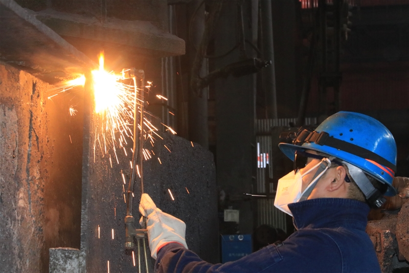 台下推钢机处,阵阵焊花灿烂夺目,仔细一看,原来是支援的维修工们正在对推钢机大梁进行校正,几名维修工人手一把焊枪,一个面罩,忙得不亦乐乎,虽然气温已到零下,但他们黝黑的脸庞爬满了汗珠 太阳集团登录。
