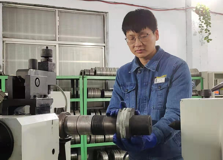 机床校工件麻烦且加工轴太长易损坏卡盘,针对此问题,师超反复思考研究后,制作了辊环主轴托架,每次校正辊环时,只需微调就可校正,避免机床卡盘变形 太阳集团在线,不仅保证了辊环加工质量,也降低了员工劳动强度,在日常工作中,他把提升班组员工的专业技能作为一项重点工作,坚持利用班组例会对机床操作进行“理论+实践”的双重培训,小到一个螺栓,大到整架轧机,真正将精细化管理贯穿到每一项具体工作中,同时,他还把自己日常收集的一些书籍和积累的工作经验分享给大家,他说,“只有大家共同进步,共同提升,才能真正做好轧线服务保障工作,”。