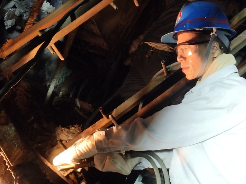 在4#连铸机二冷室里,第坚强正埋头忙碌着,尾坯刚刚拉过二冷室,等不及温度降下来,他拿着扳手,割枪 太阳成集团tyc33455,钻进狭小的二冷室里干活,喷淋管上不时有水滴落下,他在水滴与汗滴下与时间赛跑,从一流到八流,从一段到三段,“滋滋”的声响伴随着钢花飞舞,这一进去便是半小时,等他出来后,全身的工作服都湿透了,汗水顺着衣角流到了地上,而他全然不顾,又忙着去切冷钢。
