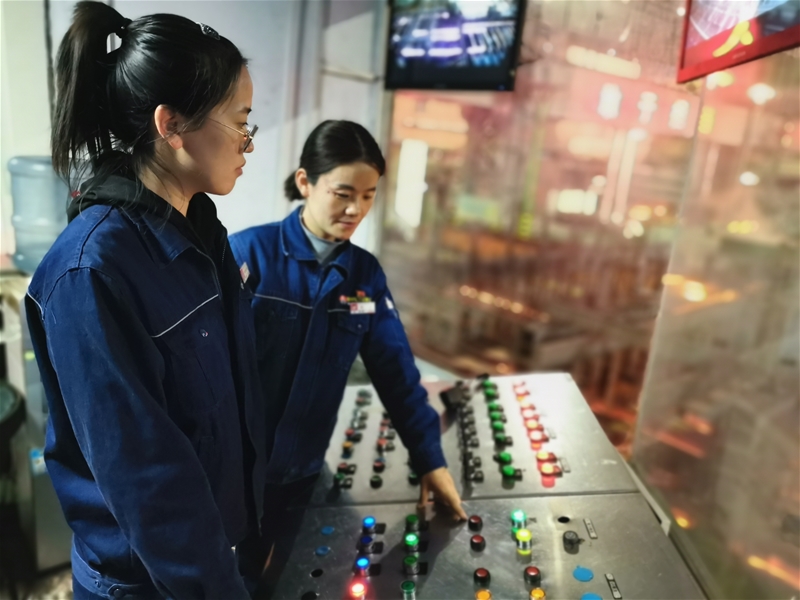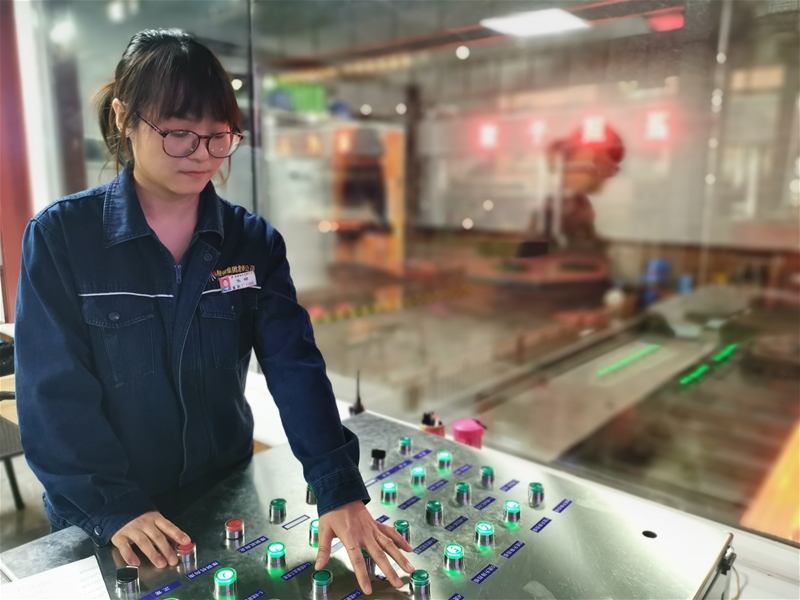 推钢工是最艰苦的女工岗位之一,该岗位对操作人员的理论知识 太阳集团在线,操作技能及身体素质等方面都有着较高要求,推钢工是连铸生产顺行最后一道关卡的把关人,是把控连铸生产顺行的重要岗位,该岗位对操作人员的体力,耐力,能力都有很高的要求,特别是新区连铸机八机八流的快节奏,对推钢工来说更是一种考验,她们要学会基本的理论知识及操作要点,准确按动操作台上的按钮,保证每一根红坯顺利推至冷床,还要正确填写钢水炉号,品种以及钢坯的规格尺寸记录。