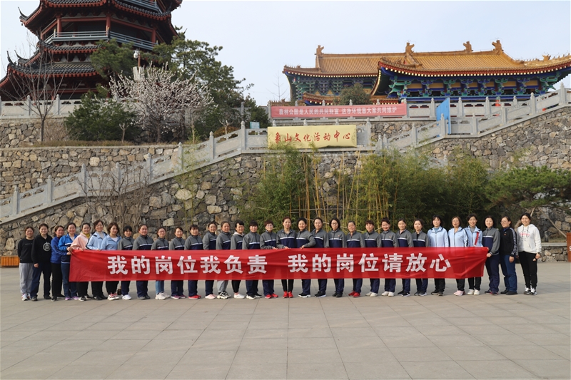 图三:象山脚下,来自各岗位的45名女工身着运动服 太阳成集团官方版,英姿飒爽地集聚在鲜艳的旗帜下,随着一声令下,大家奋勇争先地向山顶进发,让每位女工在欣赏风景,亲近自然的同时,不仅锻炼了身体,放松了心情,又磨练了意志,展示了当代钢铁女工不怕困难,勇攀高峰的精神风貌。
