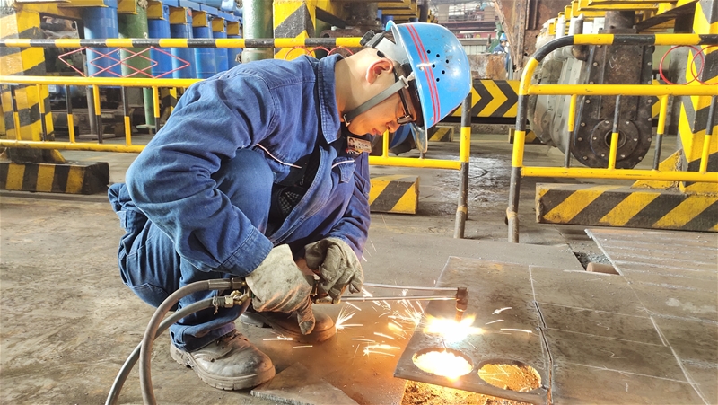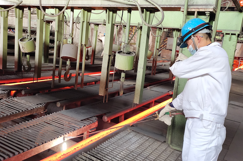 在4#连铸机台下,两名拉矫剪切工正在辊道旁切割三流的连角,切割人员一手拿着割枪,一手半遮住面部,在钢坯的炙烤下他们额头上渗出汗水,但他们却没有一丝动摇,依然双目不移,紧紧握着割枪切割,认真而谨慎,在火花飞溅中快速且标准地将连角切断,只为确保割缝在标准范围内,降低消耗,刚切割完铸坯的他们顾不上额头上的汗水,走向定尺杆的位置,抬起定尺杆,三步并作两步跨越辊道,对温度最高的中间流红坯进行长度测量,动作统一,干脆利落,为了保证铸坯的定尺合格率达到100%,像这样的场景一班下来需要重复五六次,但,他们却没有任何怨言 太阳成集团官网,默默坚守在自己的岗位,为降本增效做出自己的贡献。