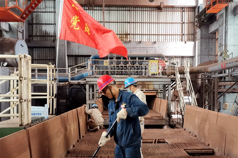 265㎡烧结机副机长杨国骁是此次“青年突击队”队长,他率先进入混料筒内,在筒体内部空间狭窄,光线阴暗,温度高达45摄氏度等多种复杂环境下,按照预定方案双手有力“舞”起风镐,从上向下对积料进行清理,只见大块积料刷刷落下,随着时间一点一点过去,清料工作已进行到混料筒深处,借着人孔透进的阳光,隐约能看到他奋战的身躯 太阳集团网页版。