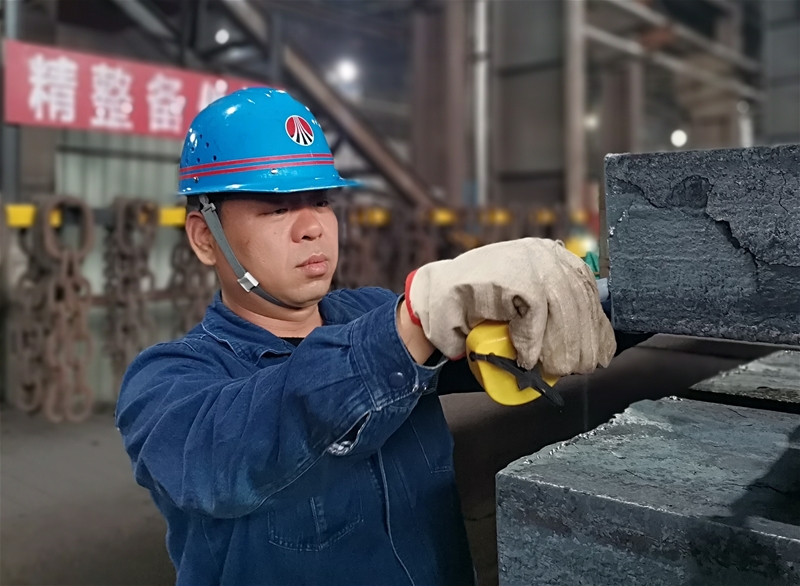 钢检工,一顶蓝色安全帽,一身蓝色工作服,一把尺子就是他们的全部武装,无论严寒酷暑,他们每天穿梭于连铸机与轧机间,衣服湿了又干,只为确保钢坯,钢材质量正常 太阳集团平台,作为生产主力军的他们,不言苦,不喊累,时刻牢记:职责所在,必须全力以赴。