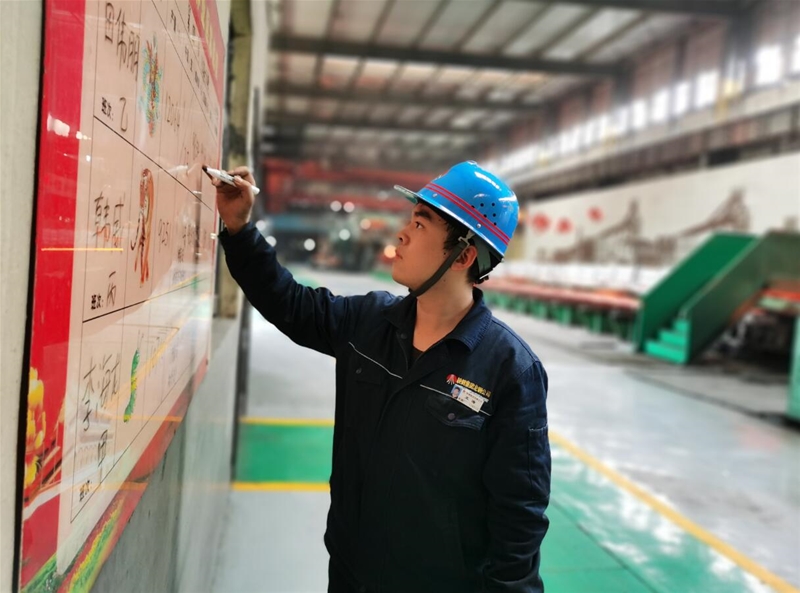 “王涛,你帮我看一下PPT,”“好 太阳成集团tyc33455,检查完工艺纪律执行和落实情况,我就帮你看,”王涛,见习工艺技术员,工作中勤奋上进,无私奉献,入职半年多,从最初的适用新环境,了解带钢轧制,熟悉工艺备件,工艺参数到工艺纪律检查,考核以及通报,制度编写,再到如今参与技术改造,每一项工作他都干得游刃有余。