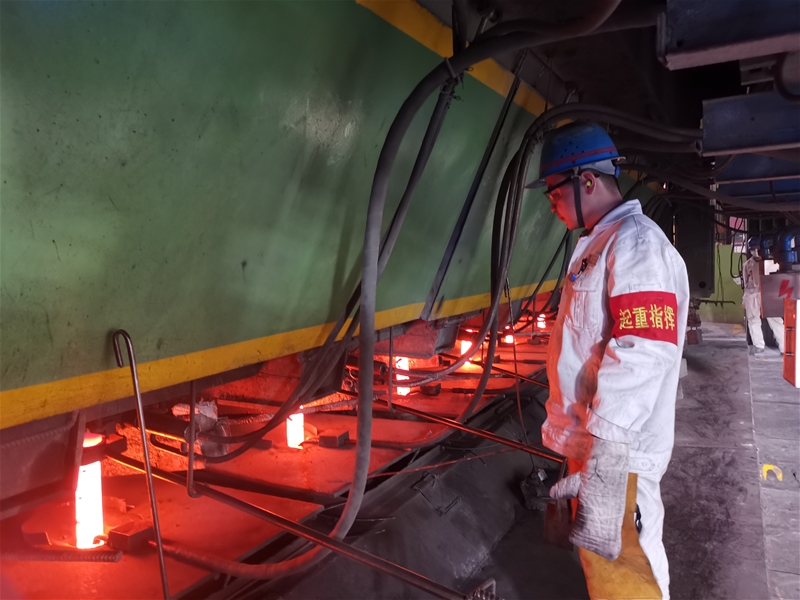 “快,四流红坯未割断…”推钢工通过对讲机着急地向台下人员反馈信息,接到通知,台下组长陈成林戴上手套,一把抓起割枪,迈开步子冲向四流准备手工切割,另一名拉矫剪切工一边开乙炔,一边托起氧带紧跟其后,找准位置站稳后,其它几个流的红坯像是一条条火龙,从他们身旁穿梭而过,陈成林强忍着红坯的炙烤,咬紧牙关,左手半遮着脸,右手紧握割枪对准切割位置,伴随着切割的“滋滋”声,红坯一分为二,他们的脸庞被烤得红彤彤的,白色的阻燃服也烤得有些发黄,顾不上喝一口水,他们又赶紧跑去处理火焰切割机故障,拉矫剪切工们不仅要保证钢坯的顺利出坯,而且每小时都要跨过顶着近百度的高温测量一次定尺,保证铸坯的定尺合格率达到100% 太阳集团登录。