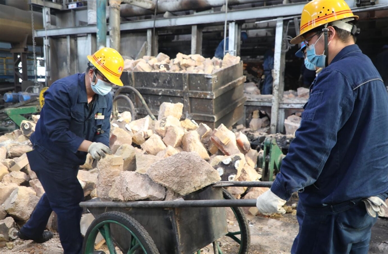 炉内清渣作业战斗打响了,为进一步了解炉内情况,笔者屏住呼吸,带着好奇心进入加热炉,顺着手电筒的光望去,看到炉内清渣的他们,裹着披风帽,戴着护目镜,手里的铁锨上下挥舞,一辆小车不一会就被装满了,空气中弥漫着炙烤和钢渣的味道,笔者驻足了两分钟已汗流浃背 太阳成集团官方版,而他们穿着厚重的工作服,戴着面部护具仍旧咬牙坚持着……由于炉内空间狭窄,每次只能进去四五个人,为了确保检修作业高效完成,他们分组轮流清渣,用镐挖,铁锨铲,再用小推车运送出来,紧张而有序,他们不畏高温,挺身而战,用实际行动践行铮铮誓言。
