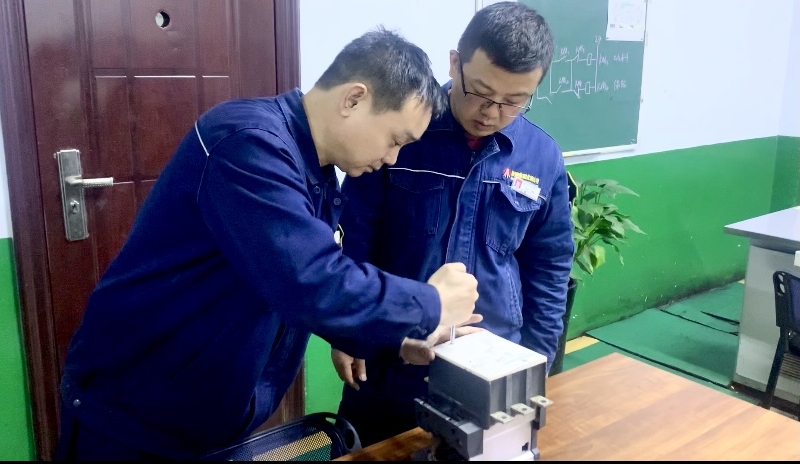 棒三作业区成品2#行车有两台电机,由正反转控制线路构成,一个接触器控制两台电机,若其中一台电机线路发生故障,会造成行车主钩电机不同步,影响生产,且排除故障过程繁琐 太阳集团官方网站,针对这一问题,经技术人员现场反复论证,决定在行车控制柜内加装两个空开,实现两条线路控制主钩电机,若电机发生故障,只需用万用表测量,即可准确判断出问题所在,及时处理,省时省力,年综合创效8万元。