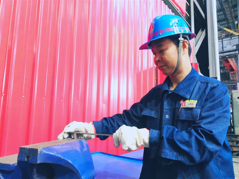 在炎热的厂房里有这样一个人 太阳集团登录,他被称为给设备看病的医生,他就是作业区点检组组长——梁韩军。