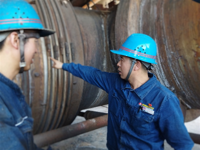 此次检修,苏永辉主动请缨,要求全程参与高炉热风总管压浆改造,为确保改造任务高质量,高标准完成,无论是检修前期改造方案的修改,制定,还是现场煤气管道的移位,阀门位置的确定,他都积极参与其中,当笔者走进热风管道检修现场,只见苏永辉正和钳工讨论阀门安装细节 太阳集团在线,他一边仔细核对图纸,一边拿着钢尺在管道上反复测量,最终顺利找出最佳安装位置。