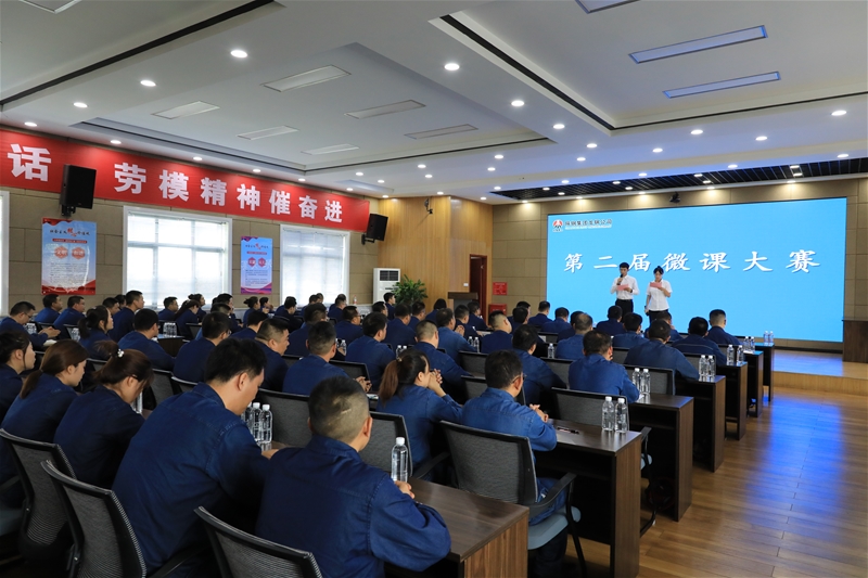7月8日,公司在第八会议室举行第二届微课大赛,公司副总经理朱元洲观摩比赛 太阳集团下载,行政管理部,党群工作部,基层单位相关负责人及90名职工代表分别作为专业评委和群众评委参加大赛。