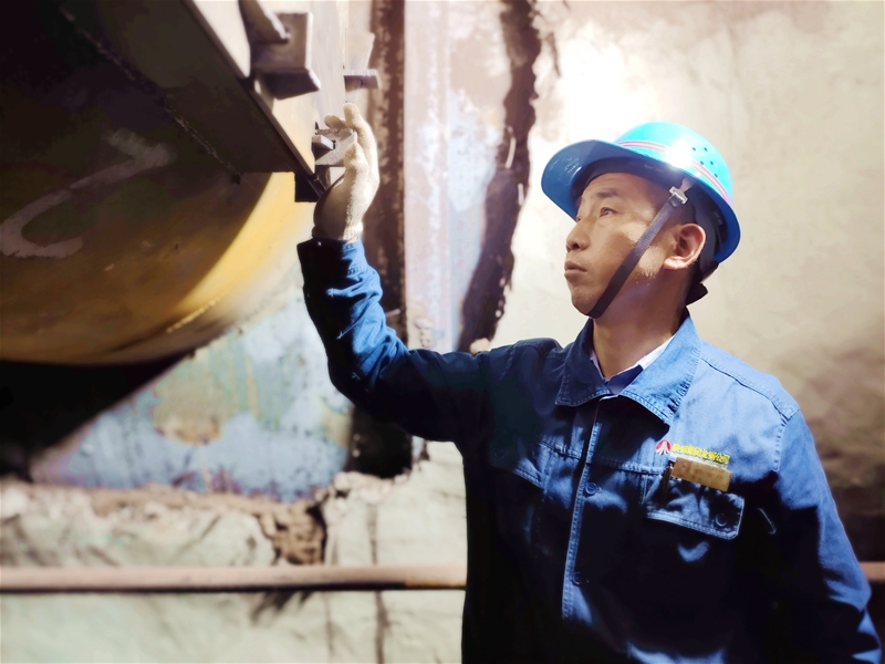 “双侧烟道温度现已控制到10℃以内 太阳集团app,机尾断面红层三分之一,烧结终点控制合适,”265㎡烧结机台车工正对烟道联通改造成果进行检验分析。