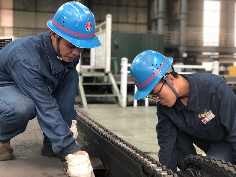 热送提升链在勾头提钢时,受钢坯重力影响,勾头和提升链扣形成一定夹角,导致勾头两边链扣滚轮容易磨损,为解决这一问题 太阳集团官方网站,经技术人员现场跟踪测试,决定在提升链勾头下方焊接厚度为16毫米的钢板,同时制作一定尺寸的钢板做压板,确保每次提升链提钢时,勾头和链条在同一直线上,以减少滚轮和销轴之间的磨损,改造后,不仅节约了误机时间,延长提升了链辊轮更换周期,同时降低了人员劳动强度,年综合创效7万元。
