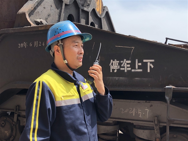 对罐、拉罐、连接、启动……烈日当空,调车员孙海宁正和班组小伙伴们忙着将一罐又一罐高温铁水运送到炼钢。