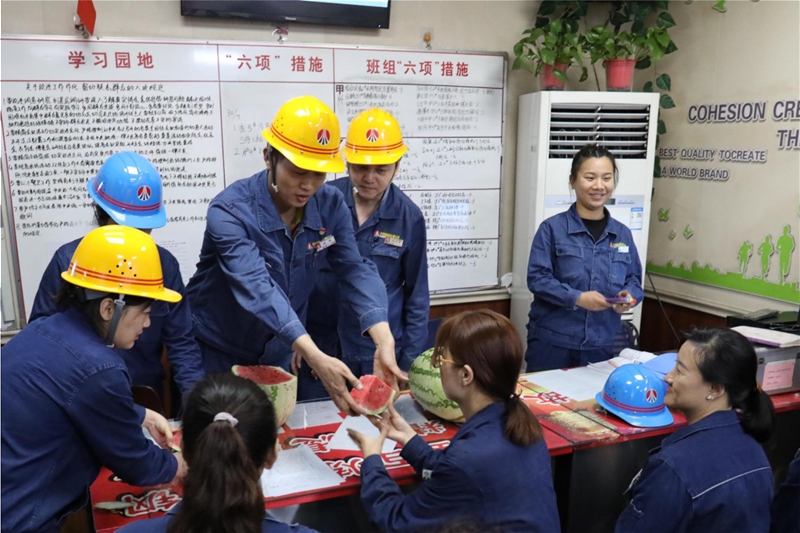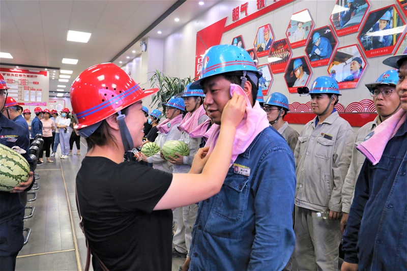 “小张,快到政工科领取防暑降温物品……”5月份,龙钢公司为职工准备了丰富的防暑降温物品,先后为每名职工发放了白糖10斤,绿茶1斤,花茶1斤,绿豆2斤,金银花茶2罐等;降温饮品在去年基础上增加了苏打水,纤维素水,加多宝,沙棘汁等;设立绿豆汤熬制点,每天各班组都可以免费领取,同时还组织志愿者到转炉 太阳成集团tyc33455,连铸等高温岗位慰问坚守岗位的一线职工,为他们送去西瓜,毛巾,饮料,矿泉水等防暑降温物品,极大鼓舞了一线职工的士气与斗志。