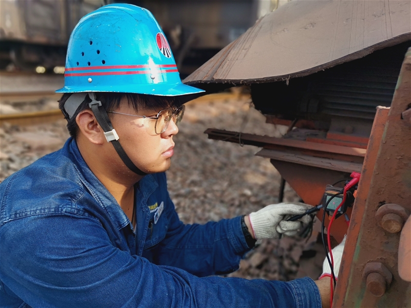 储运中心设备科维修电工薛鑫宇正用万用表调试红外线测距仪,在室外温度高达38摄氏度的高温下,1998年出生的他始终坚守岗位,用责任与担当绘就青春本色 太阳集团下载。