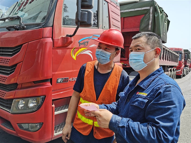 中午十二点,储运中心采样作业区自动采样站南广场,班长赵江峰正在给拉运矿粉的司机师傅详细讲解采样新系统操作流程。烈日当头,他不惧高温,用自己的实际行动展现了采样人的服务态度。
