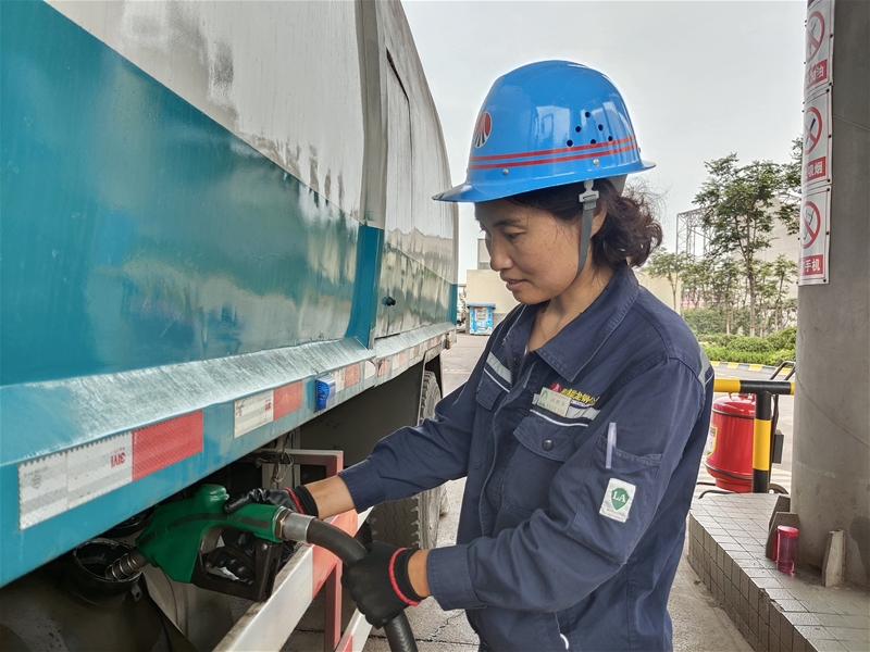 头顶的红日无情地炙烤着大地,厂区内,储运中心加油员闫燕萍正在认真为车辆加油,她始终保持微笑,用心服务每一位客户,为生产运输顺行默默奉献自己的力量。