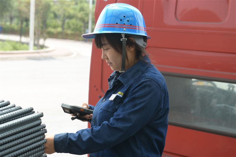 炎炎夏日,高温充斥着整个北门扫码区。二维码业务员王颖严格执行标准化作业,对每捆钢材依次扫码,确保钢材件数和外观质量无误,她用认真负责的工作态度,严把每一件钢材出厂的最后一道质量关,全力维护“禹龙”品牌声誉。