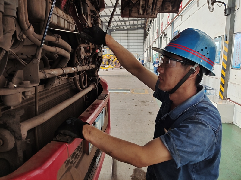 闷热的车辆维修工房里,维修工刘小萍正在维修车辆后刹车灯。虽然临近午休时间,但他丝毫没有停下来的意思,始终坚持“一切服务于车队”的原则,细致用心地排除每一处故障,确保每一辆车健康驶出工房,铁前物料运输顺行。