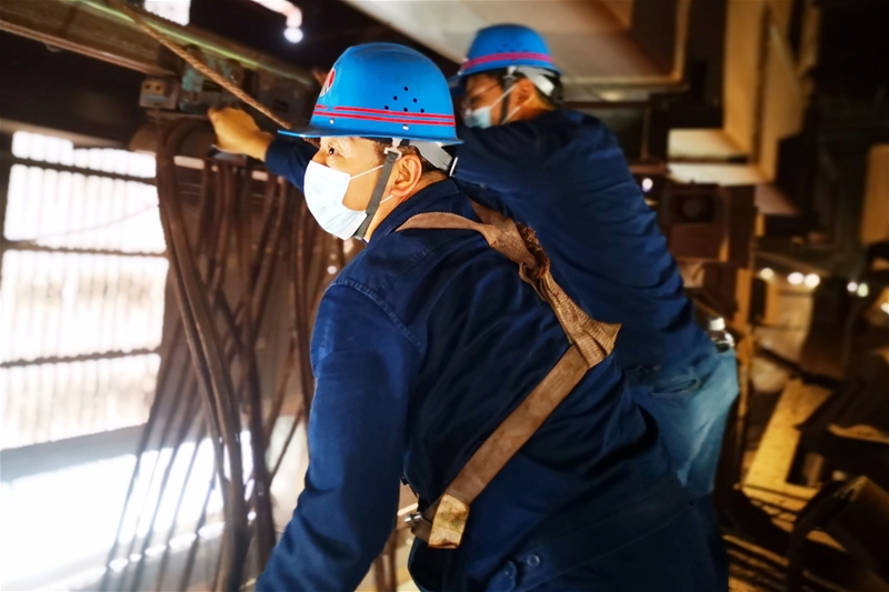 “梁师,这段拖缆有打火痕迹 太阳集团登录,”发现了故障点的程鹏飞高声喊道。话音刚落,“梁师,小车卡死了。”电工胡立生也发现了拖缆小车问题。“鹏飞、云龙,切开电缆外皮检查重接,立生、国兴和我一起速度拆卸更换拖缆小车。”站在距地面4米多高的检修平台上,身材高大的胡立生单手托起60多斤重的拖缆线配合同事拆除更换拖缆小车;刘云龙顾不上腰伤,在不到60公分宽的过道内对拖缆线快速进行对接。此时此刻,高架上抢修现场的各项工作有条不紊进行着……。
