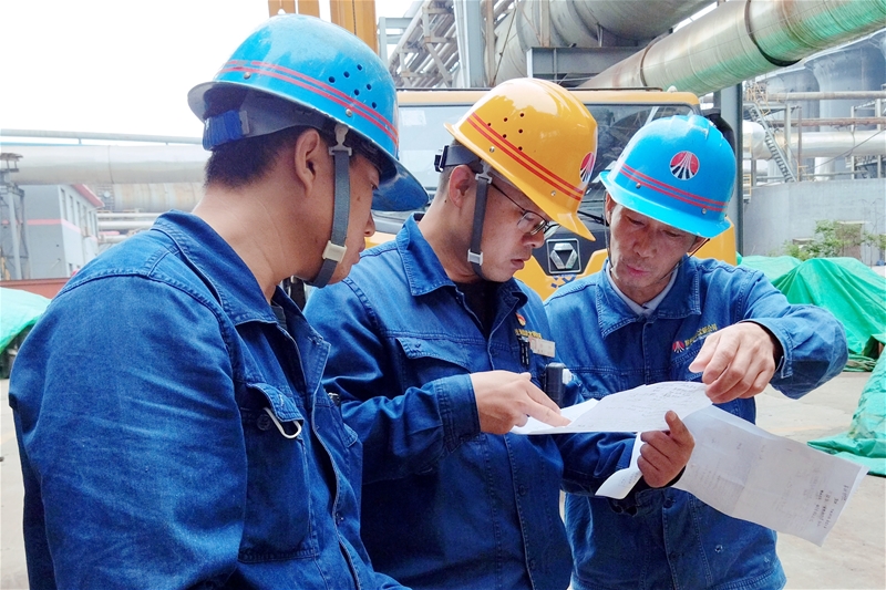 “先检查一下,有可能卸下来的我们再一起想办法,节约一个螺栓都算降本了。”在设备主管薛永峰的提议下,作业人员检查后一一做好标记进行拆卸。一圈24个螺栓完成拆卸、切割后,他们使用撬杠齐心协力将新的筛板进行了更换,最后的紧固螺栓似乎成了设备主管薛永峰的专利了,每一个螺栓都会经他二次紧固,才放心。“还不放心大家?”“不是不放心,检查完每一个螺栓的固定,是对员工工作的肯定,更是对工作的负责。”面对安环科王小康的疑问,薛永峰淡淡一笑,从容答道。