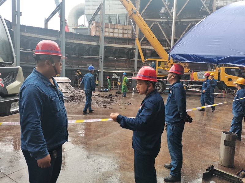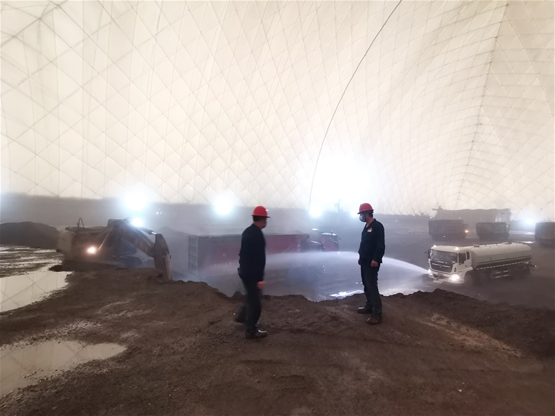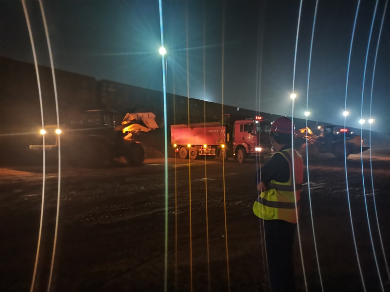 “五道2轮14:38分转运结束 太阳成集团官网,”“一道2轮14:41分转运开始,”中雨连绵不绝地冲击着站台上刚刚卸下的矿粉,为了尽快将矿粉入库,同时保证雨天湿矿卸矿安全,该单位启动雨天卸矿应急预案,落实“安全环保”运输法则。