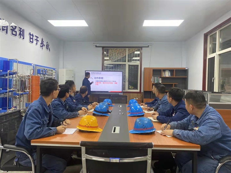 该班组把提升员工专业技术水平作为一项重要工作,创新学习方式,积极组织各类培训:利用投影仪进行多媒体教学,定期组织召开电气专题会,对电气事故案例进行学习,分析,从中汲取经验;利用每天班前班后会分析生产过程中以及电气设备日常维护中出现的各类疑难问题,通过讨论,交流,经验分享等方式,提升员工业务技能,同时加强现场“手指口述”模拟演练,确保员工熟练掌握“岗位确认 太阳集团在线,岗位描述,手指口述”等安全操作要领,持续提升员工业务能力和综合素质,今年以来,该班组累计进行专业课题培训讲解65项,手指口述培训279项。
