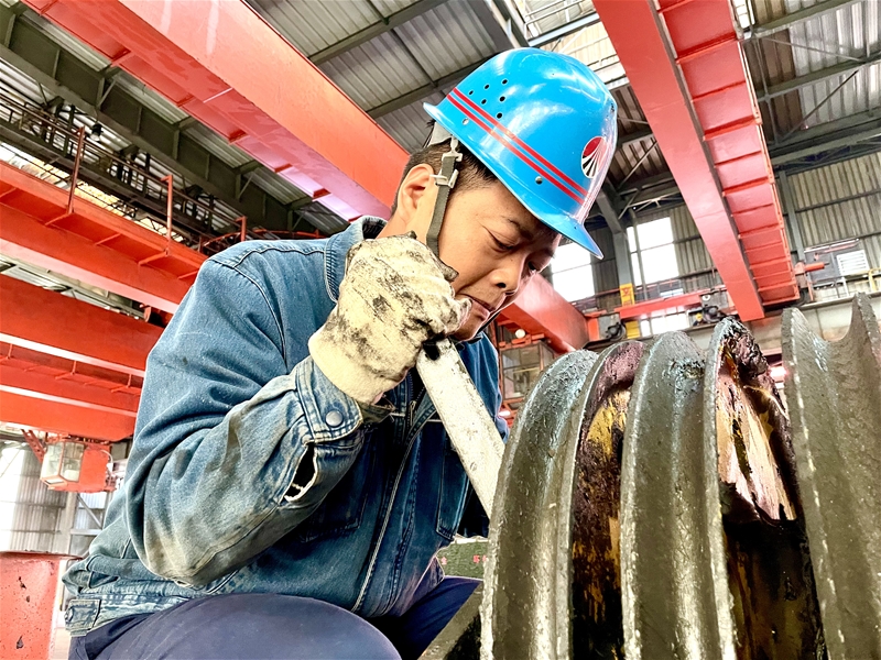 由于作业空间受限,操作起来极不方便,他们猫着腰,只能一点一点转动着扳手拆卸螺丝,手酸了,腿麻了,换个姿势,或是稍微挪动身体,时间一分一秒过去,他们终于完成了车轮拆卸,随后,他们用起吊器把新车轮吊到行车上,由于车轮过重,他们只能慢慢地把新车轮滚到相应的位置上,一个人扶着车轮,另一个人安装轴承座 太阳集团手机版,固定螺丝,安装联轴器……此时,厂房外西北风呼呼地刮着,但他们却汗流浃背,越干越有劲,为了加快检修进度,原本需要2小时的更换,他们提前半小时完成,狭窄的空间里留下他们最美的工作身影。