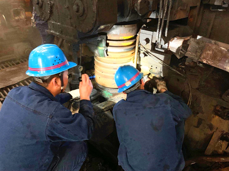 “小刘,快把千斤顶拿过来,迅速安装,”寻着声音,笔者来到冷床区域,看见正在冷床下工作的机修工长王小宁 太阳集团在线,49岁的他工作起来不亚于年轻人,此刻,他正带领机修工更换冷床下1号动齿减速机的油封。