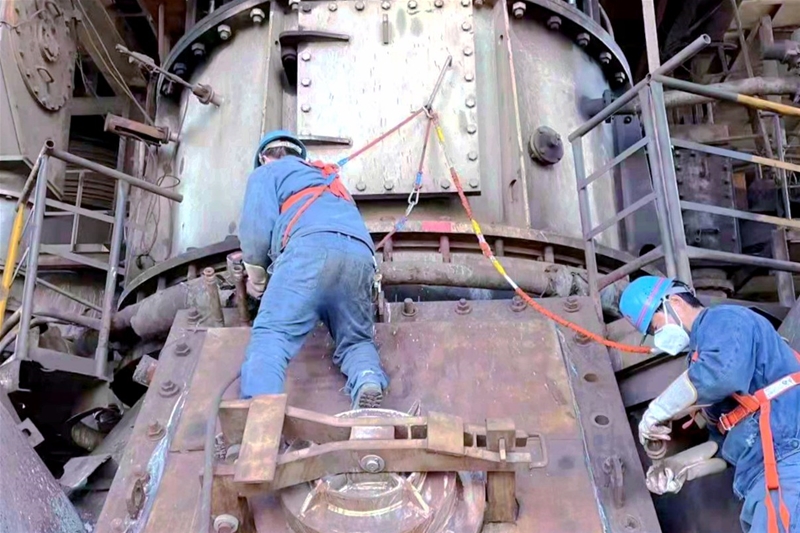 他们合力拆卸,吊运,各司其职,配合默契 太阳集团app,半个小时后,拆卸的炉顶大方盖安全拖放到了平台指定位置。
