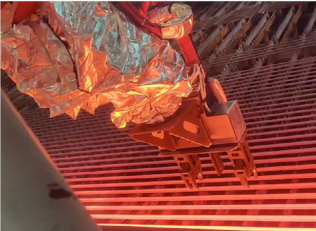 轧线生产过程中对成品棒材的取样检验是准确反馈轧制状况的重要措施 太阳集团官方网站,该智能取样系统采用一套六轴工业机器人和自动取样测量设备相结合的设计形式,通过对棒材尾部的定位识别,让机器人取样时能够抓取到棒材尾部的合适位置,整个系统由主控系统,机器人系统,剪切抓取装置系统,定位识别系统,压紧减速系统,冷却系统,定尺称重平台系统,分料系统,气控系统和外围设备十大部件组成,该系统的投运实现了棒材在线自动取样,自动长度测量,测重,实时将测量数据自动反馈至中控操作台进行在线调整,实现了工业机器人替代人工棒材取样,降低了传统人工取样的劳动强度,减少废品,待判材的出现,提高了轧线生产的工作效率和自动化水平,让无人取样成为现实。