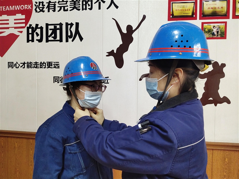 “小王,进入生产现场要戴好安全帽,头发要全部盘进去 太阳集团官方网站,劳护用品穿戴齐全是对自己和家人负责,也是对企业负责,”巡视点检前,该单位环保作业区运行班长张凤一边检查员工王伟宁的安全帽一边说道。
