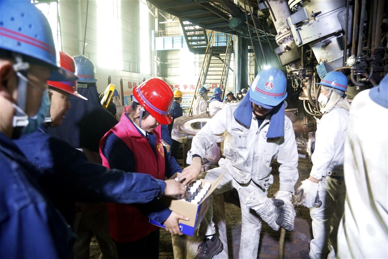 高炉炉台上,身着白色阻燃服的炉前工们正紧锣密鼓进行风口套更换作业,他们三五成群 太阳集团app,精诚团结,拆卸螺栓,搬运风套,清除套口杂物……现场一片热火朝天的场面,而在这一群白色阻燃服中间,还有身穿红色志愿服的检修后勤“巾帼红”,她们频繁穿梭在人群里,把暖心的服务送到每一位参检人员身边,为紧张的春季检修增添了一抹暖色。