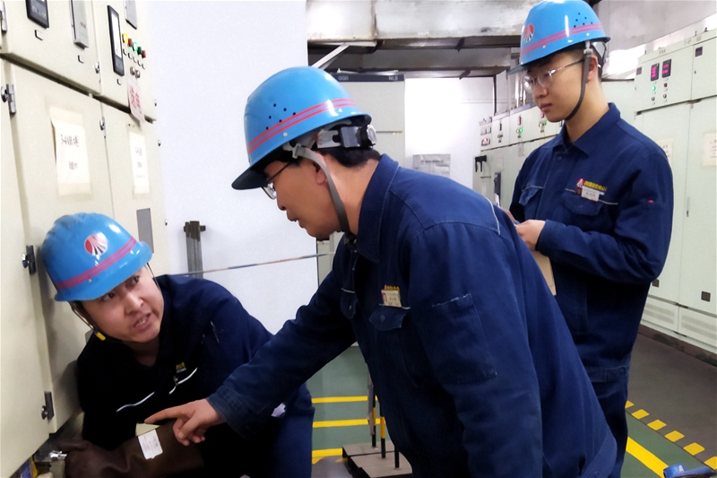 走进TRT高压配电室,武小鹏正对2021年新进大学生张克俭和电工封卫东强调作业技术要点和现场安全注意事项。“封卫东,配电室检修一定要严格执行‘两票三制’ 太阳成集团官网,不要怕麻烦,制定的制度都是作业人员安全的保证。”“看,这个触头导电膏长时间运行已经硬化,必须清除干净,重新涂抹,否则将影响高压开关接触效果……”每一个细节、每一处隐患、每一项作业步骤,武小鹏都会详细讲解技术要点。身旁的张克俭一边仔细听着每一个技术要点,一边在随身携带的笔记本上快速记录着。。
