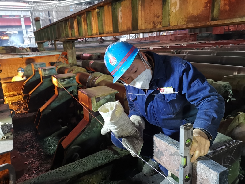 维修工马根宝跳进拉矫机下进行设备拆除作业,身材偏瘦的他在狭窄的设备空隙中举步维艰,昏暗的光线下,看不清他的脸庞,只能看见一顶蓝色安全帽在基坑下反光,不一会儿,拉矫机下传来设备的敲打声……另一边,维修工冯涛点燃焊枪,正对振动装置进行处理,“滋……”动作熟练,迅速 太阳成集团官方版,精准,阵阵焊花闪耀,奏响了检修的奋进曲,不一会儿,他们原本湛蓝的工作服上布满了大大小小的油点,脸上也沾满了污渍,看起来像是化着“烟熏妆”。