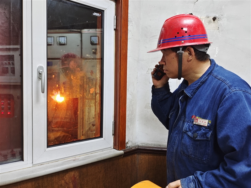 为了保证生产顺行 太阳集团app,他每天提前一个小时进入岗位,了解上一班高炉出铁情况,铁水成分,混铁炉存铁及包口是否完好,将信息第一时间反馈给当班生产调度,日复一日,年复一年,他已经在混铁炉坚守了18年,而笔者见到张博时,他刚刚从混铁炉顶下来,满脸的汗水与外边依旧寒冷的天气形成了鲜明对比。
