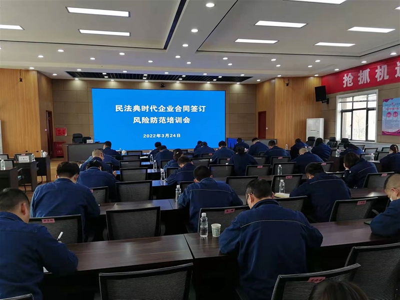 为深入学习贯彻习近平总书记法治思想,落实集团公司法治建设相关要求,全面开展普法宣传教育活动,3月24日 太阳集团下载,公司举行了民法典时代企业合同签订风险防范培训会,公司党委委员,总经理助理,副总会计师邢宏昌,副总经理姜剑锋以及各单位合同管理员,风险防控员等参加。