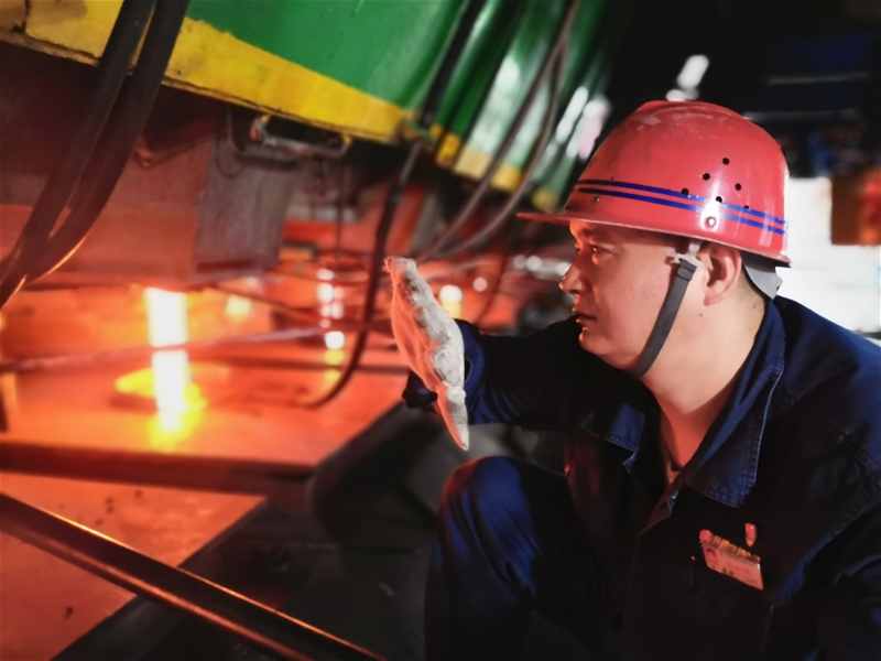 “目前中包车横移小车车轮用的轴承,受力面小且润滑不均匀,导致频繁出现轴承损坏情况。”“我们换个小车轴承型号,增大轴承的受力面……”在火热的浇钢区旁,维修班长刘玉清正和维修工商讨解决中包车横移小车车轮轴承频繁损坏这一问题。统一意见后,他们立刻行动起来。