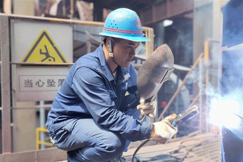 此次检修,杨涛和他的工友主要负责成品区域环冷机维护与保养检修任务,新型环冷机焊接标准极其严格,要求焊缝必须严密工整,每一次焊接都需高度集中,精心焊接,焊枪也不能出现任何抖动,否则将会影响检修质量,虽然刚停机的环冷机还带着炙热的温度,但检修时间紧,任务重,只见他手拿刺眼的电焊枪,在38摄氏度的高温环境下 太阳集团在线,快速进行焊接作业,点燃的焊花就像夏天的烈日一样,仿佛连空气也要烧着,他豆大的汗水就像流水一样洒落在地上,又快速蒸发。